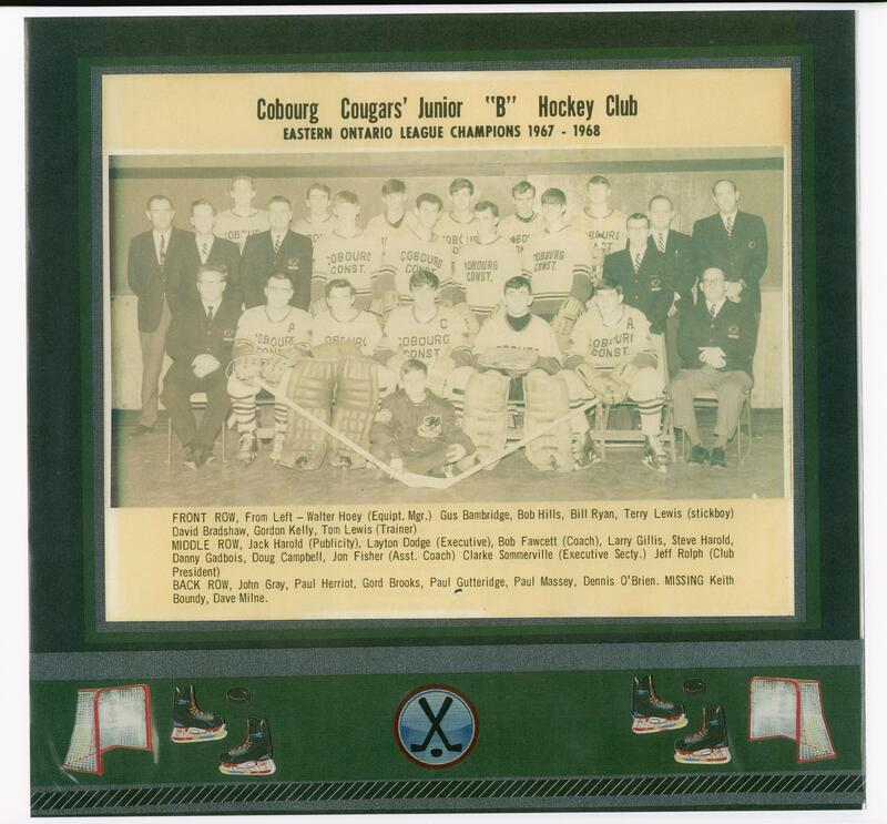 In 1967 Gord made the Cobourg Cougar Junior 'B' team.