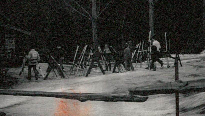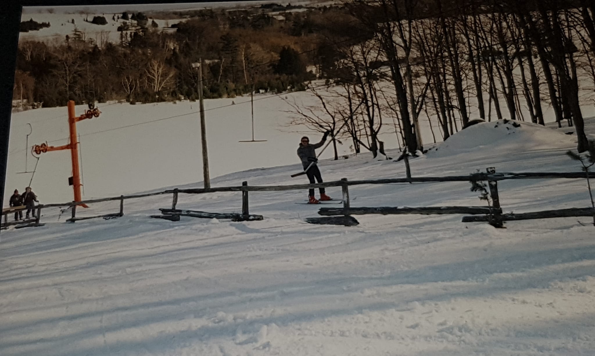 As numbers increased, Pat and Carol decided to purchase 14 acres of property west of Camborne on what was then known as Lean Road, now Doyle Road. The Doyles built a home at this location and the upstairs became the chalet. Six new ski runs were designed and two rope tows installed. The runs were named Grist Mill, Witches Wind, Spillsville, Camel Back, Gambler’s Flight and the Junior Hill.
