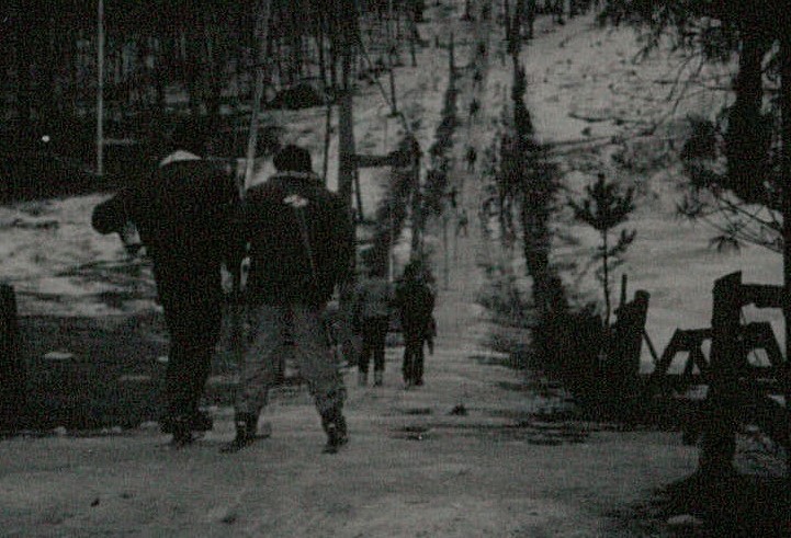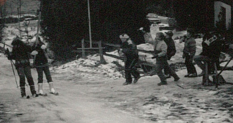 Pat Doyle, a bricklayer by trade, found an article in a magazine on how to build a rope tow using a Pontiac car motor. Putting his mechanical skills to use, Pat soon had a rope tow ready to operate. He and Carol prepared the hill for skiers by putting on their skis and side stepping on the hill to pack the snow down.